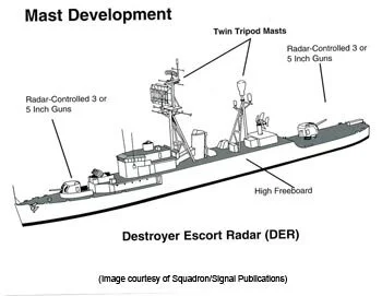 The 563 destroyer escorts built during World War II were divided into six classes. Four of the six classes mounted 3"/50 guns, while the last two classes mounted the larger 5"/38 gun. The various destroyer escort classes also mounted different types of propulsion, depending primarily upon what type of engine was available due to the high demands of new construction. Read More…